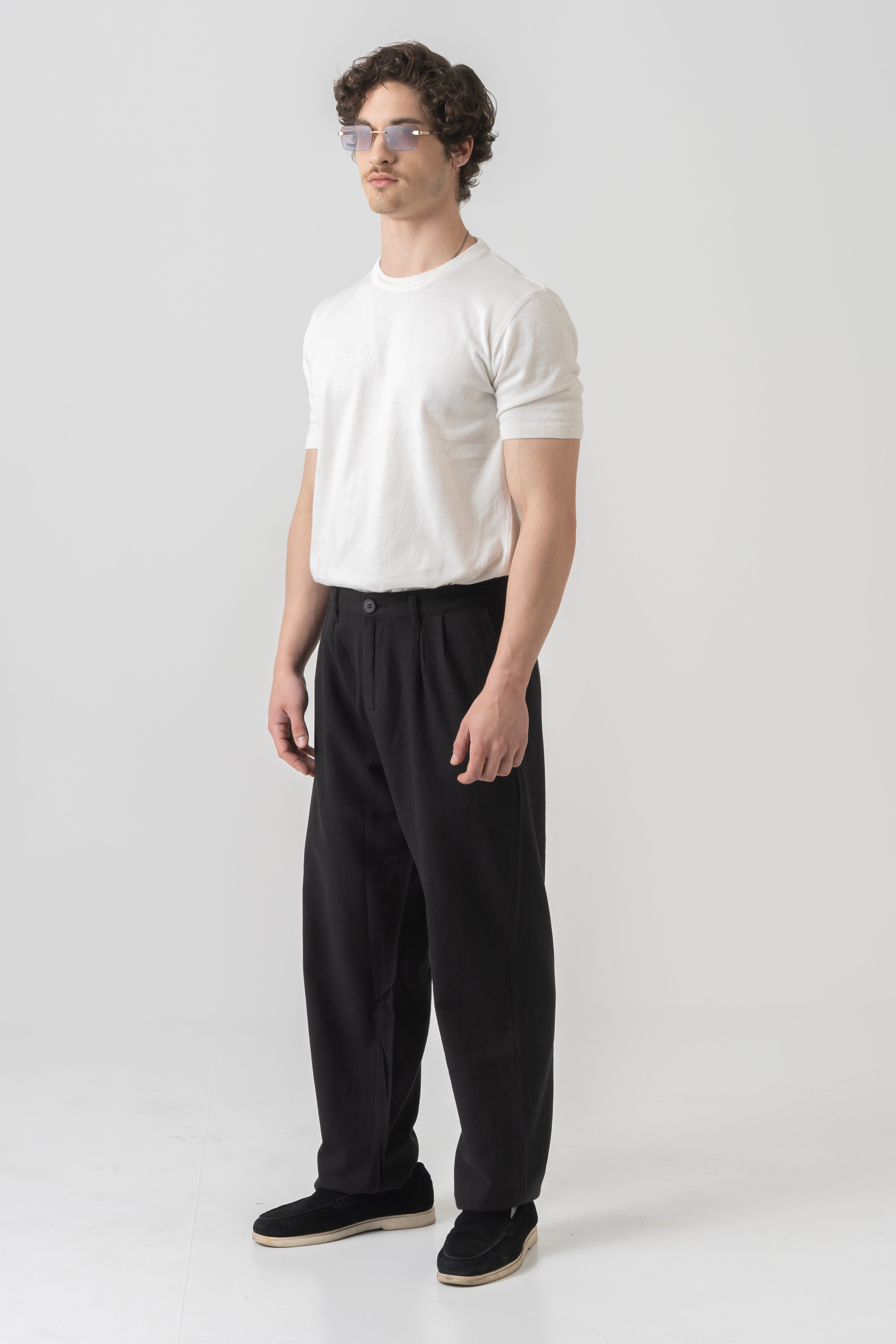 LEVANO is a study in quiet precision. With its clean, off-white tone and sculpted simplicity, this short-sleeved knit offers calm clarity in an overstated world.